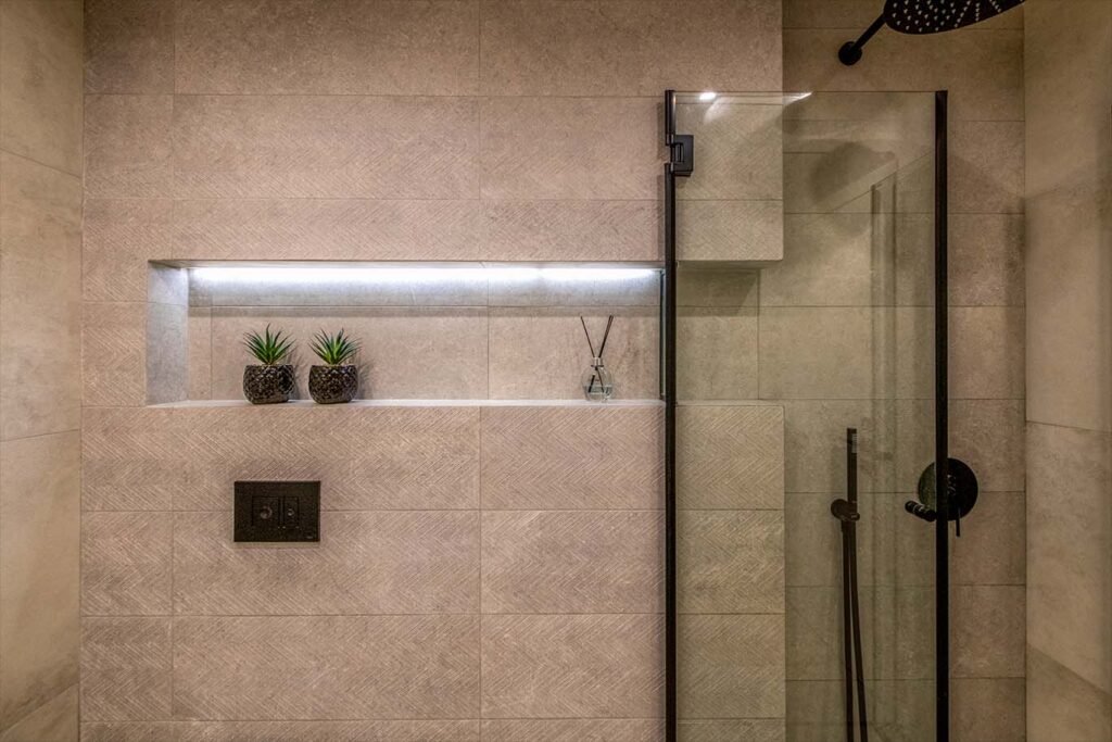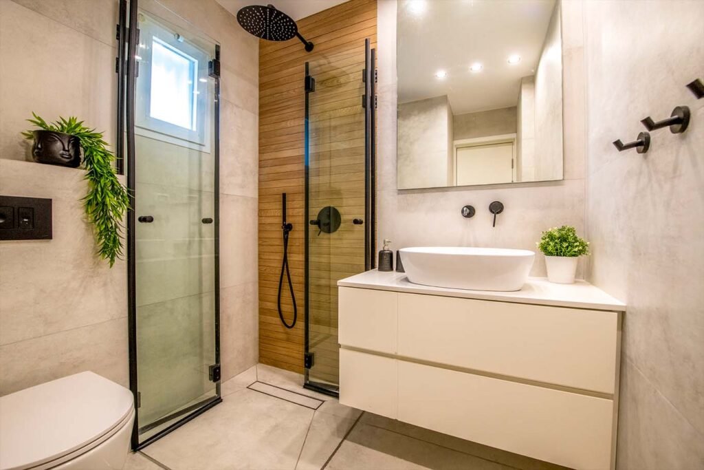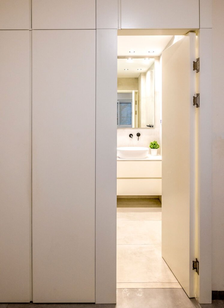 שידרגנו את חדרי הרחצה, את הכניסה לחדר רחצה הורים הסתרנו בהסוואה כחלק מארון הבגדים ובכך קיבלנו מראה נקי ויפה.